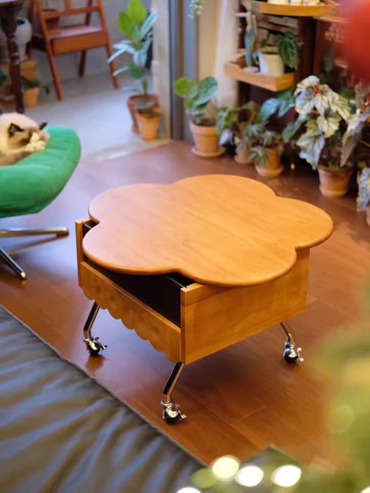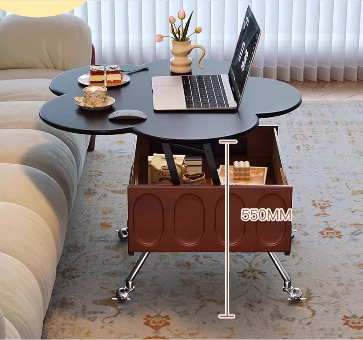 The Flower Lifted Coffee Table features a raised top for extra storage, helping keep your space neat while adding a stylish touch to your living room.