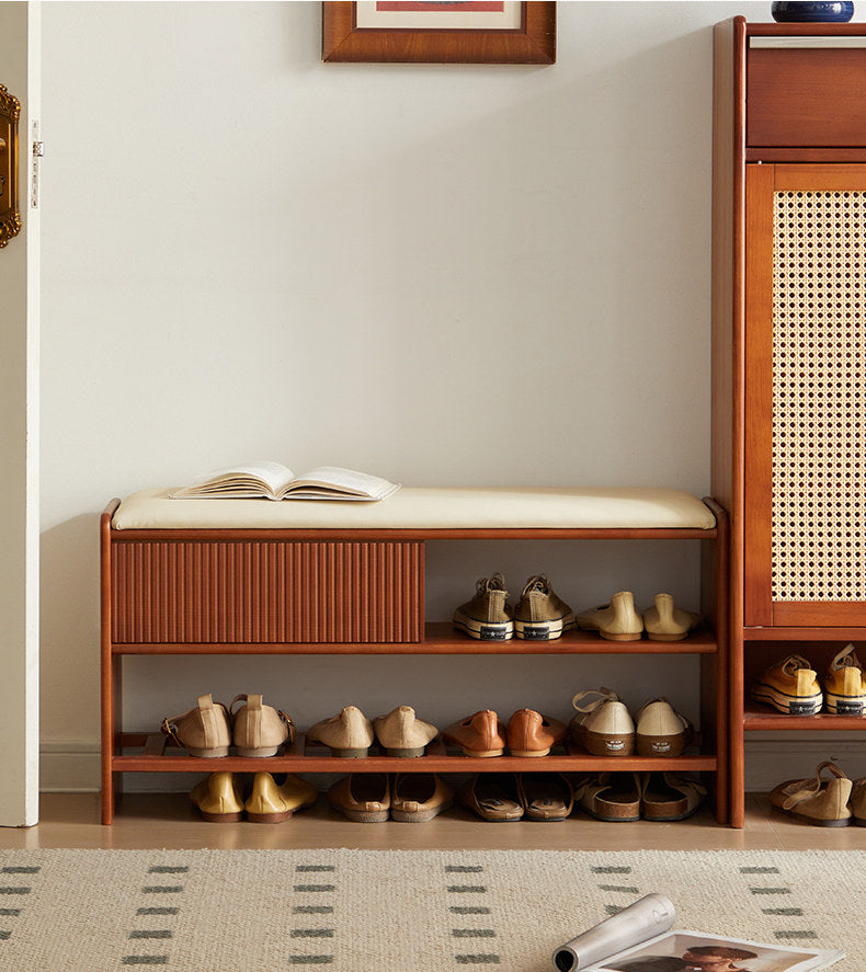 It’s the perfect height to sit on while you tie your laces, and its compact size fits easily in entryways, closets, or at the foot of your bed. The natural wood grain looks beautiful on its own, making it both a handy tool and a nice-looking piece of decor.