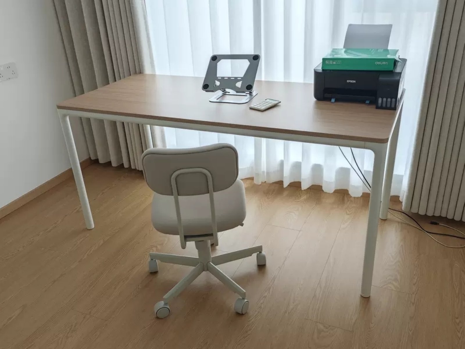 โต๊ะคอมพิวเตอร์นี้มีท็อปโต๊ะไม้เนื้อแข็งหนา 18 มม. ที่ทนทาน และโครงเหล็กแข็งแรงทำจากท่อขนาดเส้นผ่านศูนย์กลาง 42 มม. หนา 2 มม. โครงเคลือบด้วยสีที่เป็นมิตรต่อสิ่งแวดล้อมและไม่มีกลิ่น เพื่อพื้นที่ทำงานที่ปลอดภัย เหมาะสำหรับใช้ทั้งในสำนักงานและที่บ้าน